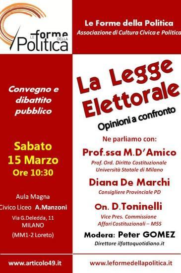 Domani mattina, al liceo Manzoni di Milano, l'appuntamento organizzato dall'associazione 'Le Forme della politica': modera il direttore de il fattoquotidiano.it Peter Gomez, ospiti la professoressa D'Amico, il consigliere provinciale Pd De Marchi e il deputato M5S Toninelli