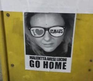 Uber-Milano-volantino“Cara responsabile di Uber” – inutile ripeterne qui nome e cognome ed amplificare così il messaggio di violenza –, dicono i manifestini, “go home”, ovvero tornatene a casa, casa che, per inciso, nel caso in questione, è proprio il nostro Paese. E poi una manciata di caratteri in sovraimpressione sulle lenti degli occhiali che compaiono nella foto della donna, più esplicativa di mille parole: “I love rubare”.