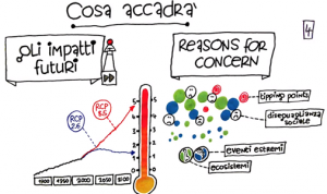 Gli incrementi futuri di temperatura, legati all’incremento di concentrazione di CO2, sono strettamente correlati con l’aumento del rischio legato ad esempio alla salute degli ecosistemi, agli effetti degli eventi estremi e alla disuguaglianza sociale.