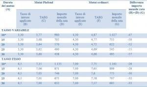 Tabella 1 – Confronto tra le condizioni dei “Mutui Plafond” e “Mutui ordinari”