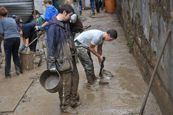Nel novembre del 2013, ad Olbia, l’auto, in gran parte sommersa dall’acqua, trascinata dalle corrente di un corso d’acqua, straripato. Ma anche gli studenti che aiutano a ripulire le aule di una scuola dopo il ciclone.