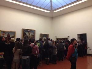 Il punto è che Franceschini non ha smentito alcunché. Semplicemente perché non si può smentire l’evidenza. Le due fotografie che pubblico in questo post le ho scattate io, a mesi di distanza: e parlano di una condizione di assedio permanente. Le norme di sicurezza impongono di non superare la compresenza negli Uffizi di 980 persone: invito il ministro Franceschini a non andare agli uffizi di lunedì, giorno di chiusura (lo ha fatto questa settimana), ma ad entrarvi in incognito (o a mandare qualcuno di cui si fidi) nell’ora di punta, e a contare quante persone affollano sale e corridoi.