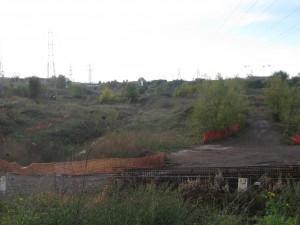 Nell’area dalla morfologia incerta a dominare è la vegetazione spontanea. In ampi settori i rovi hanno creato un inestricabile tappeto sempreverde. Qui e là ci sono alberi di faggi, di altezze differenti. Si riconoscono delle strade di cantiere e, specialmente nella fascia prospiciente via Andriulli, materiali accatastati. L’ingresso al cantiere si trova poco distante, quasi nei pressi della rampa per la A24. Due grandi pannelli con le indicazioni tecniche dell’opera sono l’unico segnale, in coincidenza di un cancello. L’ingresso è tuttavia possibile dai varchi creati nella rete che perimetra l’area. Anche da qui entrano le famiglie rom che abitano le baracche poste dietro ad alcuni grossi cumuli di terreno. Che ne schermano la vista dall’esterno. Nell’area alcune aree sono recintate dalla caratteristica rete arancio in plastica. Nulla a che vedere con la Tav. Solo avvicinandosi ci si accorge che lì dentro rimane ancora qualcosa degli straordinari resti individuati anni prima dagli archeologi. Sotto i teli del “tessuto non tessuto” adagiati sulle strutture, ma ormai in gran parte strappati, emergono un lungo muro in opera incerta, uno degli invasi stradali scavati nel banco, alcuni resti degli ambienti realizzati a contatto della via Collatina, i pozzi di areazione dell’Aqua Virgo. Forse si conserva in vista dell’altro. Tra le immondizie accumulate dagli abitanti dell’area e i cumuli di terreno artificiale.