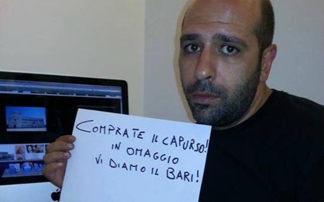 Comprate la Bari” è diventato il nuovo tormentone del web. L’appello lanciato dai calciatori del Bari in cerca di un acquirente è stato raccolto da vip e semplici tifosi, giornalisti e tanti giocatori. Perché il miracolo della squadra biancorossa – fallita dallo scorso marzo e protagonista sul campo di una clamorosa cavalcata in zona playoff – non ha lasciato indifferente nessuno. L’ultimo ad essersi accodato è Checco Zalone, con una foto pubblicata ieri sera sulla sua pagina Facebook. Anche se stavolta si tratta di una versione particolare del tormentone: l’attore pugliese è originario di Capurso (piccolo comune a meno di dieci chilometri dal capoluogo) e per questo propone scherzosamente l’acquisto della squadra del suo paese (che milita in Terza Categoria). “In omaggio – scrive – vi diamo il Bari”.