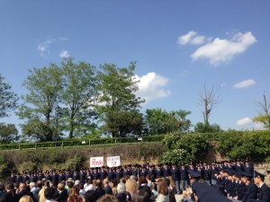 Gli allievi cantano in coro Pensa di Fabrizio Moro mentre ad aprire la serie di testimonianze è il direttore della scuola Gianpaolo Trevisi che ha voluto ribadire ai propri ragazzi che portare la divisa è anche ricordare ogni giorno gli eroi che hanno creduto in essa. Non bisogna demoralizzarsi mai,crederci sempre e quando c’è una piccola debolezza pensare a chi ha sacrificato la propria vita. Ad alleggerire il clima è Pif , Pierfrancesco Diliberto, che parla della sua esperienza dopo il film La mafia uccide solo d’estate, poi ricordando la strage afferma: “Bisogna vivere il 23 maggio come se fosse ogni giorno 23 maggio,ogni giorno. Perché purtroppo la mafia ti vince nel quotidiano; invece oggi è il 23 maggio, domani è il 23 maggio, dopodomani deve essere il 23 maggio. Quando mi chiedono nelle scuole:”Ma quelle morti sono servite?” Ho trovato la risposta solo recentemente ed è DIPENDE TUTTO DA NOI” .