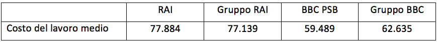 Una conseguenza di questi dati è che la remunerazione media dei dipendenti è più alta in RAI che in BBC, come mostra la tabella 2.