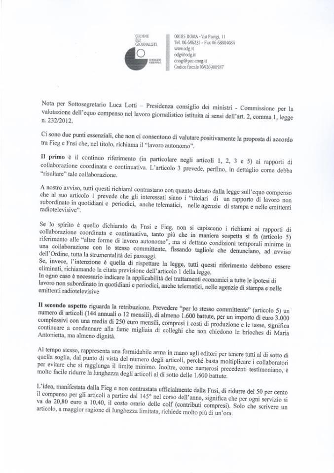 Firmato l’accordo sull’equo compenso per il lavoro giornalistico in caso di collaborazione coordinata e continuativa, ovvero per i cococo. Tutto è avvenuto giovedì sera nella riunione presieduta dal sottosegretario alla presidenza del Consiglio con delega all’Editoria Luca Lotti. L’unico a votare contro tra i membri della Commissione governativa è stato l’Ordine dei giornalisti presieduto da Enzo Iacopino, mentre il documento è stato approvato da Fieg (Federazione italiana editori giornali, cioè gli editori), Fnsi (Federazione nazionale stampa italiana, il sindacato dei giornalisti) e Inpgi (istituto di previdenza dei giornalisti italiani). Tra le tariffe minime stabilite, 20,80 euro a pezzo per i quotidiani con una media di 12 articoli al mese, 6,25 euro per agenzie (con un minimo di 40 segnalazioni/informazioni al mese) e web aumentati del 30% con foto e del 50% con un video. Se la produzione giornalistica è maggiore, però, si procede per scaglioni e i pezzi successivi sono retribuiti in misura inferiore (pagina 3 allegato sotto). Cifre incluse nell’allegato dei parametri – le stesse stabilite da Fieg e Fnsi per il lavoro autonomo – che fanno quindi già parte di una delibera governativa per la quale verrà emanato un decreto la settimana prossima. Lo stesso decreto, scrive in un comunicato la Fnsi “che la prossima settimana dovrebbe definire i criteri di attribuzione dei fondi triennali per l’editoria”.