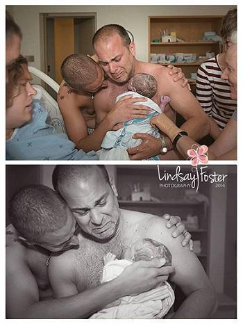 Due genitori in lacrime, emozionatissimi e a petto nudo, per favorire il contatto “pelle a pelle”, fondamentale per stabilire il primo legame tra genitore e figlio. Sono BJ Barone e Frankie Nelson, coppia gay canadese, immortalata dalla fotografa Lindsay Foster nel momento della nascita del loro bambino, partorito da una mamma “in affitto”. Lindsay Foster pubblica la foto sulla sua pagina facebook e i commenti sono incredibili. L’offesa, l’omofobia, la voglia di linciaggio si avvertono lontano un miglio.