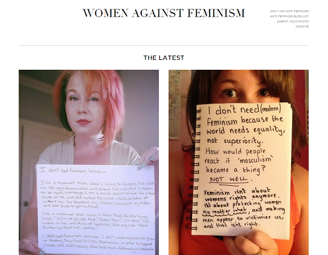 Molto estivo e ricorrente arriva puntuale anche quest’anno il ‘caso’ del ‘movimento di donne contro il femminismo’. Dopo le ormai ‘storiche’ pagine facebook, per non dire dei siti antifemministi che identificano chiunque lotta per i diritti di genere, o contro la violenza maschile, come misandrica e nazifem ecco servito l’hashtag in lingua inglese #womenagainstfeminism, al quale va aggiunto, per la cronaca, quello #WhyIDontNeedFeminism.