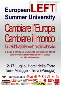 Si è tenuto, dal 23 al 27 luglio, nella tranquilla ed accogliente Weberlinsee, a 40 chilometri da Berlino, l’Università estiva della Sinistra Europea (Se). La Sinistra Europea raccoglie 27 organizzazioni politiche di tutta Europa, diverse organizzazioni ed associazioni di tipo politico, nonché migliaia di membri individuali e molti partiti osservatori. La Sinistra Europea è la componente principale del gruppo Gue/Ngl all’Europarlamento, la cui consistenza, tra 2013 e 2014, è passata da 35 a 52 componenti.