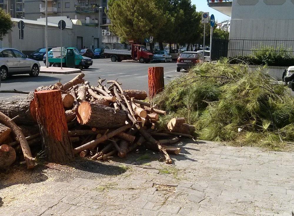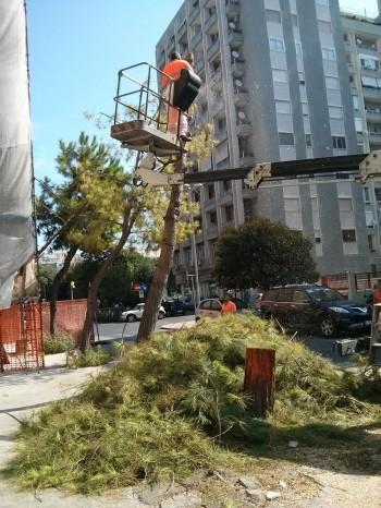 Dalle istituzioni giungono rassicurazioni che gli alberi tagliati verranno sostituiti “con altre essenze arboree”, ma saranno ben poca cosa rispetto a pini che avevano dai 20 ai 40 anni di vita e che arrivavano fino al terzo piano del palazzo a cui facevano ombra.