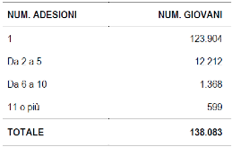 Tabella 1 – Ripartizione dei giovani registrati in base al numero di adesioni effettuate