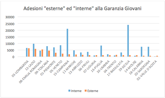 Le registrazioni “esterne” sono oltre 41mila. Si può valutare che circa 15mila giovani abbiano optato per registrazioni plurime, esprimendo una preferenza per più Regioni. Non abbiamo ancora dal ministero del Lavoro una vera e propria matrice origine/destinazione per Regione.