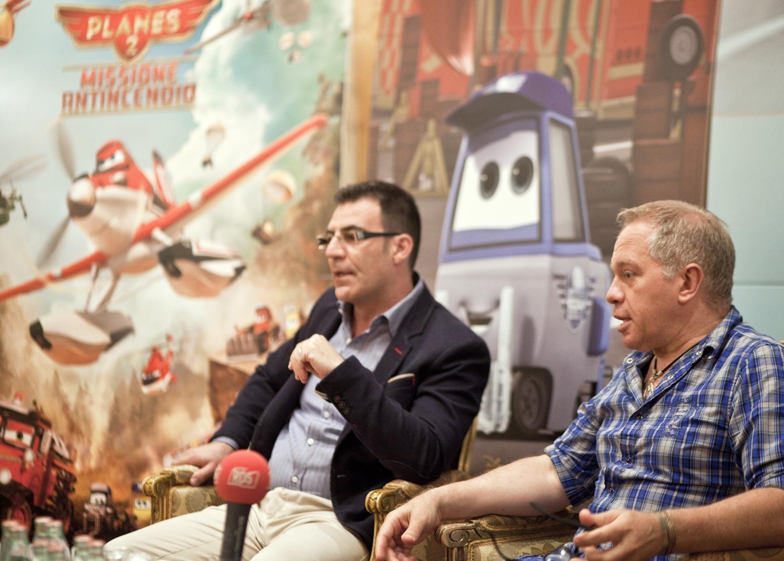 Commedia dove il nemico è il fuoco ma il bislacco antagonista a quattro ruote il Suv deluxe affarista Cad Spinner che da direttore d’albergo per auto e aerei in vacanza tra le montagne mette i suoi ospiti al secondo posto rispetto alle sue scalate di potere. All’incontro romano con il regista e il produttore Ferrell Barron, erano presenti anche i voice talent, doppiatori alle prime armi presi dalla fucina mediatica di primo piano. Appena arrivato in sala di doppiaggio ho detto: “Ho pensato a una vocina”. Ma il direttore Carlo Valli mi ha risposto: “Non serve. Lavoriamo invece sulla tua voce vera”. E così abbiamo iniziato. Ha affermato divertito Enzo Savi, voce radiofonica e d’imitatori del duo Savi & Montieri. Il suo personaggio motorizzato è Muletto Fan, piccolo e fedele montacarichi d’officina. Con Savi, il socio Antonio Montieri: “Il mio personaggio è Nick Lopez, un po’ la parodia dei Chips, che diventano Chops. È un poliziotto che in originale è doppiato da Erik Estrada, l’originale Poncharello”. Sottoposto poi agli scherni di rito dal compagno e dal “terzo incomodo” Marco Marzocca per il “Metodo Stanislavskij portato in sala presentandosi con moto e casco”.