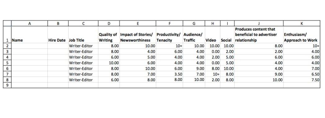 I risultati del trimestre in seguito alla divisione da Time Warner hanno sorpreso positivamente gli analisti che avevano stimato un guadagno per azione inferiore, ma hanno comportato anche una diminuzione dei ricavi dell’1,6% e il calo del 12% delle entrate pubblicitarie. In difficoltà come molte case editrici, Time Inc ha pensato di dare una spallata al muro che dovrebbe dividere contenuti editoriali e pubblicità adottando una tabella di valutazione dei suoi giornalisti che include vari parametri. Accanto a qualità della scrittura, impatto delle storie, produttività, traffico generato, presenza di video, rimbalzo sui social media ed entusiasmo nell’approccio con il lavoro, compare anche “Contenuti vantaggiosi per le relazioni pubblicitarie” (leggi). La valutazione per ogni voce va da due a dieci.