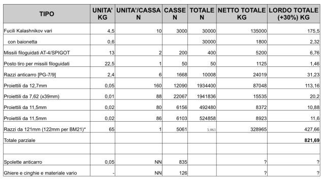 La storia dei Kalashnikov, completi di munizioni, e degli Rpg in partenza per il nord dell’Iraq era stata al centro di un’inchiesta giornalistica della Nuova Sardegna nel 2011, ripresa nei giorni scorsi da Sergio Finardi (qui sotto la tabella tratta dagli atti giudiziari di Torino e pubblicata in un suo articolo su Altreconomia 29 settembre 2011), ricercatore di TransArms in un articolo sul manifesto. All’epoca il quotidiano sardo raccontò dell’invio curato dalla Marina Militare e dai servizi di sicurezza italiani di una parte di quell’arsenale alla resistenza libica, in violazione dell’embargo stabilito dall’Onu, passando per le strutture militari sulle coste laziali. Un’altra guerra, la stessa partita di armi oggi promesse ai curdi. La procura di Tempio Pausania provò a ricostruire la vicenda, ipotizzando una violazione delle norme internazionali che vietavano di fornire armamenti alle fazioni in guerra. Sforzo inutile, l’indagine fu bloccata dal segreto di Stato. Caso chiuso, almeno per i prossimi trent’anni.