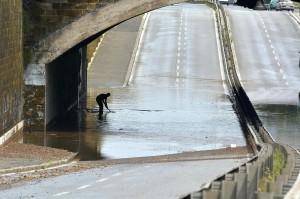 Ma veniamo alla meraviglia e all’indignazione. Macchina della polizia di lato quindi, e un poliziotto che armeggia senza pietà in terra. Ma che fa? Ci siamo chiesti nell’osservare la scena, comodamente seduti. Per far defluire l’acqua e far passare gli automobilisti, quell’uomo in divisa si stava accanendo e affannando a cercare di liberare la fogna ostruita da rami secchi e foglie… con un ombrello. Già, con un ombrello, un provvidenziale ombrello che forse teneva nel bagagliaio. Dicono che indossasse anche le calosce. Io non l’ho visto perché questo flash, che ahimè nessuno ha avuto il tempo di fotografare, è stato breve, dal momento che nella nostra corsia libera, l’autobus ha proseguito il suo cammino senza rallentare.