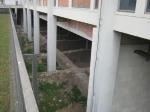 Ma quasi nessuno si sofferma su quel che si vede, sotto la struttura della Biblioteca, tra i pali di cemento sui quali è stata realizzata. Sono i resti dei Castra Praetoria, l’accampamento delle guardie permanenti dell’imperatore costruito da Tiberio tra il 21 e il 23 d. C., individuati nel corso degli scavi per la realizzazione della Biblioteca. Ma estesi anche all’interno della vicina Caserma Macao. Parti di otto abitazioni, oltre a quelli di una grande costruzione seminterrata identificata come una sorta di magazzino. Strutture conservate per breve altezza, lì sotto. Quasi nascoste. Tra lattine di coca cola e bottigliette d’acqua. L’erba che cresce spontanea. Lo stato di conservazione non può che essere quanto mai precario, considerato che sono esposte agli agenti atmosferici. Fatta eccezione per le parti, più cospicue, “protette” proprio dall’ingombro della Biblioteca. Qui, a breve distanza da uno dei parcheggi utilizzati dai dipendenti, niente erbacce. Ma ancora abbandono e degrado. Anche se diverso.
