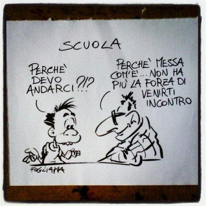 Nel frattempo, in attesa che tutto accada, vorrei vedere quell’esercito di insegnanti che non ha mai saputo trasmettere (non voglio dire passione, magari) curiosità, voglio dire quelli che insegnano perché un posto vale l’altro, perché il punteggio glielo permette, perché tanto è sempre meglio che lavorare, perché a scuola come in fabbrica ha trovato quel piccolo feudo che ne riscatta una vita misera di “potere”, quelli che ai ragazzi chiedono solo di ripetere a memoria ciò che dice il libro, in un pensiero fotocopia che abbruttisce tutto e fa odiare la cultura, vanifica il senso dell’istruzione, insomma: quelli che sanno ed è la sola cosa che possiedono. Ecco, questi: li vorrei vedere altrove a fare danni, non in una scuola dove sapranno scoraggiare gli studenti con pretese e compiti dal gusto di castigo, magari portandosi appresso quei dirigenti scolastici autoelettisi ad amministratori condominiali della scuola.