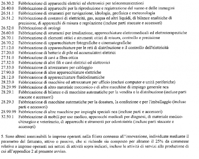 C’è poi un problema inerente all’erogazione di sussidi che non avrà mai soluzione, nonostante ogni volta si sostenga che “questa volta è diverso”. Per evitare di dare sussidi a tutti, è necessario specificare chiaramente chi ha diritto al sussidio e chi no. Si può sostenere che passare dal sussidiare settori specifici decotti al sussidiare l’innovazione in generale può sembrare un progresso, e probabilmente lo è. Ma si prenda la descrizione dei settori ammissibili ai finanziamenti per il bando “Knowledge management e processi di innovazione produttiva” del 2010: