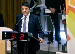 Il 23 Settembre 2014 Matteo Renzi ha preso la parola davanti all’assemblea delle Nazioni Unite, convenuta per discutere dei cambiamenti climatici su iniziativa del Segretario Generale Ban Ki-moon. Renzi ha detto che “abbiamo la possibilità di costruire un mondo nuovo ed un futuro sostenibile per i nostri figli” e che occore fare uno sforzo comune verso una crescita sostenibile, trovando alternative alle fonti fossili. “We must reduce carbon emissions through carbon pricing and energy efficiency, bytapping renewable energy sources, and by cutting back on fossil fuels”.