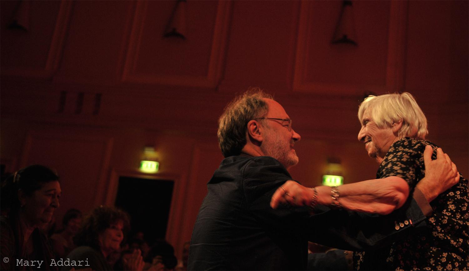 C’è stato un momento, su tutti, che vale una vita: l’incontro con Esther Béjarano, musicista ebrea tedesca novantenne, sopravvissuta ad Auschwitz grazie alla musica, perché riuscì a entrare nell’orchestra femminile del lager. Il momento è preciso e descrive il superamento, che esorcizza del tutto il ripiegamento su se stessi, il passatismo, la retorica della presunta artisticità nel fatto di cantare Bella ciao col pugno alzato: mentre lei raccontava con un sorriso angelico la sua storia, Enrico de Angelis – il responsabile artistico del Club Tenco – le ha chiesto, riferendosi ad Adorno, se dopo Auschwitz sia ancora possibile fare arte. Esther ha risposto con una leggerezza disarmante: “Certo, sono sopravvissuta per vivere, per farlo con gioia”. Punto.