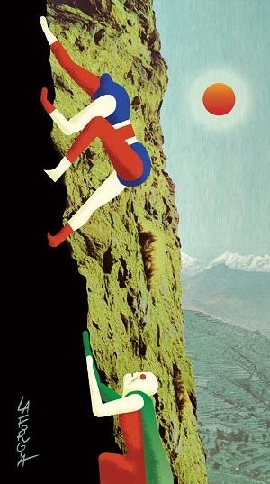 Questa capacità di alleggerire forme imponenti mi ha sempre intestardito. Ma le vere pietre miliari della mia formazione sono tutte nel 900. Aleksandr Deineka, un pittore russo poco studiato da noi, un gigante della figurazione, ha dipinto questo quadro che ho visto per la prima volta nell’enciclopedia Ulisse di Editori Riuniti (forse qualcuno se la ricorda), uno scrigno di laicità e immagini stupende, praticamente il mio primo manuale all’educazione visiva.