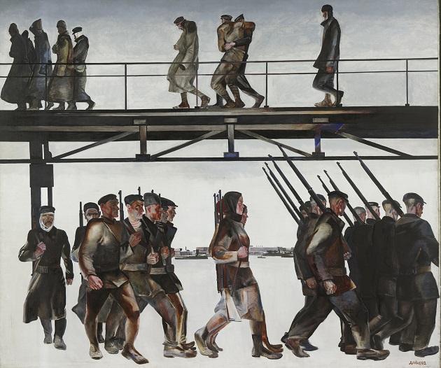 Anche qui i corpi sembrano vuoti, sembrano dei contenitori di latta e qui siamo in piena fase di esaltazione dell’industrializzazione per l’Urss. Questi corpi di latta non sono una scelta casuale, sono il ritratto di una nuova idea di umanità. E davanti al genio mi si accappona la pelle.