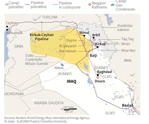 Sul confine fra Iraq, Turchia e Siria operano, secondo le più recenti stime, oltre 200 autobotti che trasportano greggio (e in parte prodotti) verso la Siria. Le vie dell’esportazione clandestina erano ben note ed erano state utilizzate dalla resistenza curda già ai tempi di Saddam. E non è un caso che i principali obiettivi dell’aviazione statunitense siano state le raffinerie che costituiscono il vero fulcro della vicenda perché l’esportazione del greggio, e non dei prodotti, pone una difficoltà in più agli uomini dell’Isis.