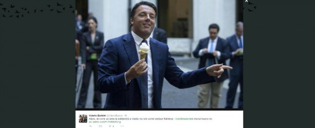Dopo la pubblicazione su 'Chi' in cui una fotosequenza mostra il titolare della Pubblica amministrazione con un cono - accompagnata da una didascalia giocata su un doppio senso a sfondo sessuale - sul sito di microblogging rimbalza l'iniziativa contro il servizio giornalistico. E gli utenti ripubblicano anche foto in cui Prodi e Berlusconi mangiano un gelato