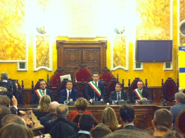 A fare gli onori di casa nel palazzo municipale è stato poi il sindaco Pizzarotti, che ha accompagnato Renzi nel suo tour tra Parma e provincia. All’arrivo in municipio il premier ha incontrato privatamente per una ventina di minuti il primo cittadino e la sua giunta, che gli ha presentato alcune istanze riguardanti il Comune, tra cui anche la lettera per scongiurare l’apertura delle porte dell’inceneritore di Parma ai rifiuti di tutta Italia, come previsto dallo Sblocca Italia. “Ai comuni in questo momento serve una risposta perché possono essere il volano della ripresa – ha detto Pizzarotti davanti agli altri sindaci riuniti in Municipio – ci serve risposta economica, ma anche normativa, anche per sbloccare tanti procedimenti. Chiedo un impegno perché non passi l’idea che i sindaci sono quelli che tassano, ma che c’è dietro un governo che li aiuta e li sostiene e per questo ti chiedo un aiuto”. Pizzarotti ha parlato poi del dissesto idrogeologico e dell’alluvione che ha colpito Parma un mese fa. “Ci sono state catastrofi che costano 150 milioni che potevano essere limitati da una cassa d’espansione che noi aspettiamo da anni – ha continuato – avremo avuto danni infinitamente inferiori. In un territorio ferito è questo che ci aspettiamo come risposta del governo”.