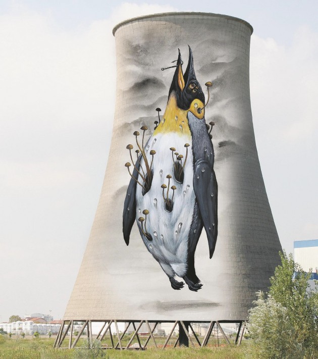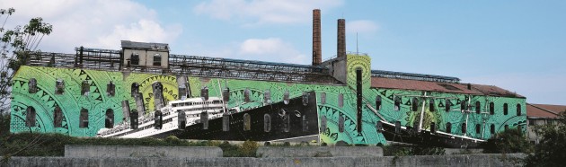 DOPO. Treviso, la fabbrica di Silea. (Bozzetto di Giovanna Pistone, in arte Gio, è nata a Roma) Ha all’attivo murales e mostre in tutta Italia e, dopo aver co-fondato il collettivo di artiste Serpeinseno, da circa cinque anni lavora sola. Sul Fatto Quotidiano di lunedì 17 novembre 2014