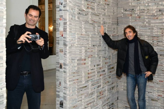 L’editoria è agonizzante. Ma se per caso vi chiedeste dove finiscono i giornali, date un’occhiata alla stupefacente installazione di Marisa Albanese a Villa Pignatelli composta da migliaia di quotidiani impilati. L’architetto Giorgio Nocerino, immortalato da Giuseppe Pimmental Fonseca: “Sono in overdose di carta stampata”.