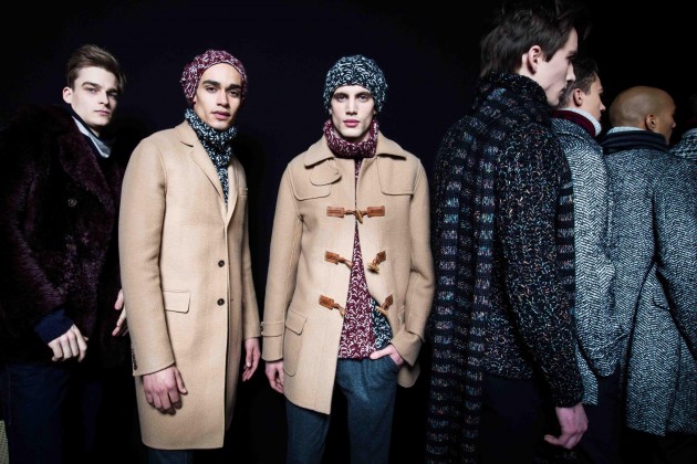 Parterre ricco di ospiti per la sfilata di Ermanno Scervino, lo stilista preferito del premier Renzi, che vanta maestranze tutte made in Italy. E sono ormai rimasti in pochi. Scervino ha puntato tutto sulla lavorazione artigianale mouliné per i capelli cascanti a mo ‘di rasta da portare sul montgomery color cammello. Pochi sanno (ma Scervino lo sa) che il montgomery nasce come divisa militare.