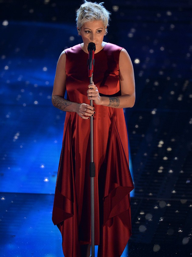 Rosso il colore dominante in questa prima serata della kermesse, indossato anche dalla terza presenza femminile Rocio Munoz Morales, ricoperta di tulle in un abito fiabesco che ricorda quelli dell’edizione sanremese di Antonella Clerici. La prima donna a rompere il ghiaccio tra le cantanti è stata Chiara Gagliazzo, fasciata in un abito lungo di raso giallo firmato da Stella McCartney, ha stupito e incantato con la sua canzone. Tra i protagonisti maschili, Carlo Conti impeccabile con il suo smoking blu notte firmato da Salvatore Ferragamo. Un abito tunica di Albino per la sensualissima Malika Ayane anche lei in rosso. Spalle scoperte, guanti lunghi per Grazia di Michele che si presenta con un abito principesco bianco e nero, mentre il suo partner Mauro Coruzzi, sveste i panni di Platinette e decide di essere semplicemente se stesso con uno smoking trasandato. Giacca british per Annalisa che ha scelto di avere un taglio mascolino grazie all’outfit firmato da Roberto Cavalli.