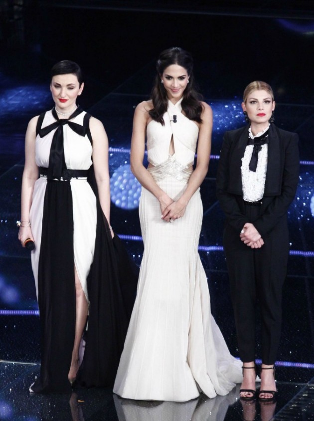 Arisa è la prima valletta a calcare il palco rimane fedele allo stilista Daniele Carlotta, mentre Emma sfoggia un abito corto di pizzo di Dolce&Gabbana. Fisico da sirena per Rocio Morales che ha scelto per i suoi outfits Roberto Cavalli. Tra le cantanti in gara Nina Zilli in oro vestita ha portato all’Ariston l’estro di Vivienne Westwood mentre la tanto attesa Anna Tantangelo ha scelto di andare sul sicuro scegliendo un black&white di Francesco Paolo Salerno vincendo la gara di stile ma andando a rischio eliminazione con il suo brano “Libera.”