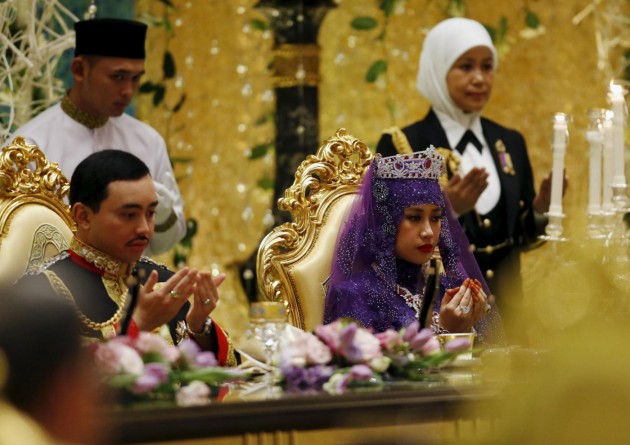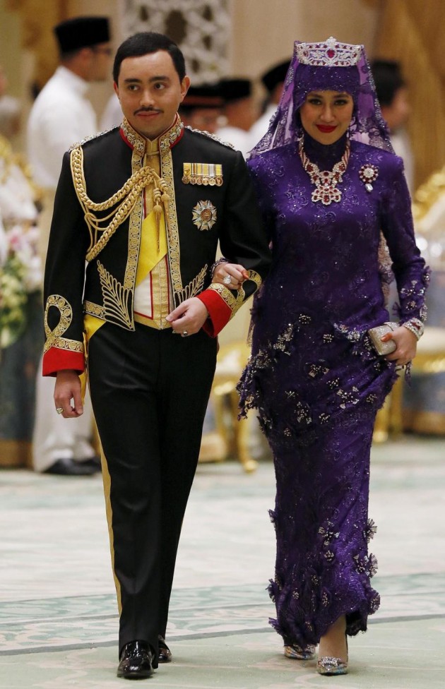 Abiti d’oro, scarpe di diamanti e un bouquet non di fiori ma di pietre preziose. Lusso sfrenato al matrimonio reale tra il figlio del sultano del Brunei, principe Abdul Malik, 31 anni, e la sua sposa 22enne Dk Raabìatul’Adawiyyah. La celebrazione delle nozze è iniziata il 5 aprile e durerà dieci giorni. Partecipano ai festeggiamenti migliaia di persone, tra cui reali malesi, dignitari, ministri e diplomatici stranieri. La presentazione della coppia è avvenuta nel palazzo reale, residenza da 1788 stanze. Protagonisti, nello sfarzo, i gioielli della sposa: diadema, collana, spilla, bracciale e anello con smeraldi. La cavigliera di oro puro, non poteva essere da meno.