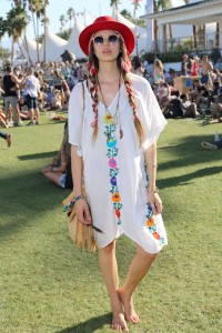 INDIO, CA – APRIL 12: Music fan Brianna Falcon in a Natalie Martin dress attends the 2015 Coachella Valley Music and Arts Festival – Weekend 1 at The Empire Polo Club on April 12, 2015 in Indio, California. (Photo by Rachel Murray/Getty Images for Coachella)