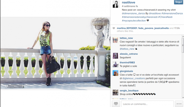 Oggi l’ instagram di Chiara Nasti conta più di 762 mila seguaci. Insieme a Chiara Ferragni e Chiara Biasi è una delle fashion icon italiane seguite nel web. C’è chi la paragona alla più famosa Belen Rodriguez e grazie a questo improvviso “sviluppo” siamo sicuri da oggi le assomiglierà ancor di più.