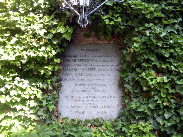 Qui venivano torturati i partigiani e a volte li si gettava nel pozzo dopo averli fucilati nel cortile. Il pozzo non è quello del giardino. Come si specifica nell’itinerario sul sito: “A questo punto occorrerebbe farsi autorizzare ad entrare nel castello attraverso il grande cancello posto sulla piazza del municipio. Nel giardino interno è visibile una grande lapide posta contro il muro dell’edificio (+45°02.020’, +09°14.682’) con i nomi di 6 caduti che qui furono barbaramente torturati e uccisi. I loro corpi furono gettati nel pozzo presente all’interno del castello. È da precisare che il pozzo di cui stiamo parlando non è quello visibile al centro del giardino davanti alla lapide, ma si trova nella parte coperta antistante l’ingresso dell’edificio che sta in fondo al giardino”. Il linguaggio informativo non toglie nulla all’orrore di quanto è avvenuto tra quelle mura erette nell’XI secolo per volontà della nobile famiglia pavese dei Sannazzaro, per dominare la valle Scuropasso.