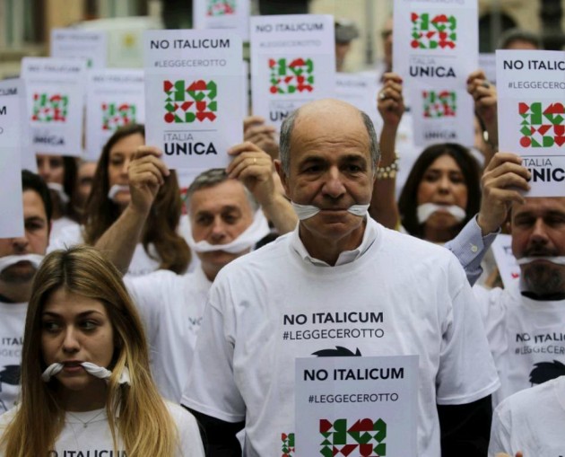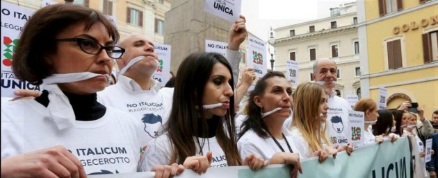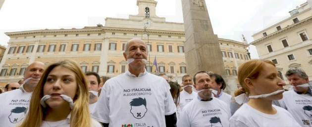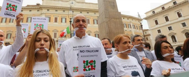 Corrado Passera, presidente del movimento politico Italia Unica, si è imbavagliato con una cinquantina di militanti per contestare la riforma elettorale. Passera ha inscenato una protesta in piazza Montecitorio contro l’Italicum di Matteo Renzi, considerata “legge-bavaglio“, oggi all’esame della Camera. L’ex ministro dello Sviluppo (per un anno e mezzo) del governo Monti ha dichiarato: “L’Italicum è un colpo di mano pericolosissimo che affida a un solo partito, e soprattutto a una sola persona, tutto il potere, e toglie ai cittadini la possibilità di scegliere i propri rappresentanti, li imbavaglia. Per questo abbiamo messo il bavaglio anche noi. Sta passando una legge che toglie ai cittadini il diritto di parlare mentre con un solo voto si affida un premio che dà diritto a prendersi il Parlamento, il governo, ad eleggere il Presidente della Repubblica. Questa non è democrazia“. Dopo avere annunciato la volontà di creare un “modello per il Paese”, a febbraio 2014 Passera ha presentato il movimento Italia Unica annunciando: “Non è né a destra, né a sinistra, ma sarà un movimento radicato, un incubatore di competenze affinché l’Italia esca dall’angolo”.
