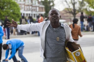 WASHINGTON, USA – APRIL 27: A protestor during riots in Baltimore, USA on April 27, 2015. Protests following the death of Freddie Gray from injuries suffered while in police custody have turned violent with people throwing debris at police and media and burning cars and businesses. Samuel Corum / Anadolu Agency