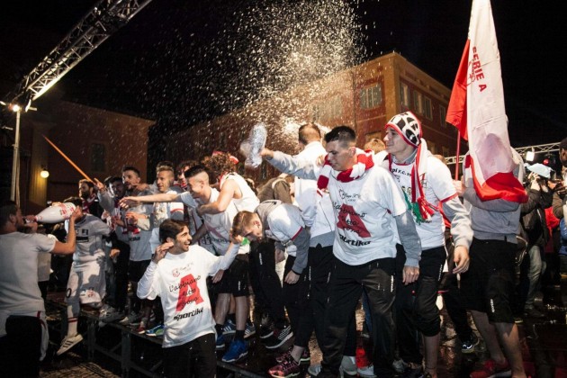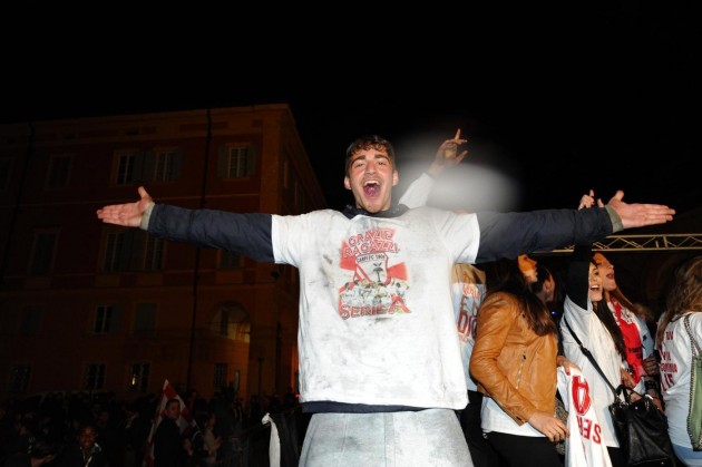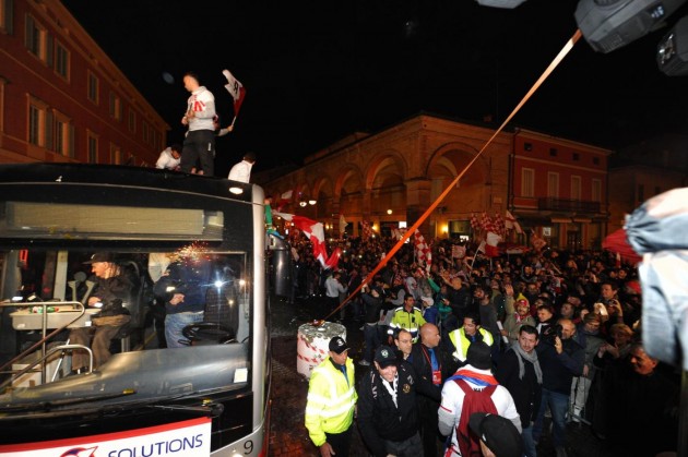 I soldi, appunto. La maggior parte viene dalle tasche di Stefano Bonacini e Roberto Marani, soci di maggioranza, Claudio Caliumi, presidente del club e socio di minoranza, oltre al main sponsor Gianguido Tarabini. Nomi noti nel mondo della moda con i marchi Gaudì, Marilena e Blumarine. Sono carpigiani e qui, nel cluster del tessile che negli ultimi dieci anni ha visto quasi dimezzarsi le imprese, hanno quartier generali e in alcuni casi la base produttiva. “Nella proprietà del club si incrociano le storie della matrice economica carpigiana che ha saputo interpretare la crisi cambiando il proprio modello e oggi ricomincia a godere di alcuni risultati”, appunta con orgoglio il sindaco. Le circa mille imprese che insistono nel distretto hanno messo insieme 1,4 miliardi di ricavi nel 2014 registrando una crescita del 3,1%. Trainate proprio dalle aziende più grosse, tra cui quelle di soci e sponsor del Carpi. “Siamo amici prima di tutto, accomunati dalla passione per il calcio e dalla cultura del lavoro a testa bassa”, racconta a ilfattoquotidiano.it Gianguido Tarabini, amministratore delegato del gruppo Blufin che produce Blumarine. “Qui non c’è un mega-milionario e allora ci siamo messi insieme per fare qualcosa di miracoloso, per passione e per divertimento. Allo stesso tempo abbiamo un bilancio sano e uno stadio pieno di famiglie. Bisognerebbe premiarle le squadre come noi, altro che prese in giro. Il vero problema del calcio è chi non paga gli stipendi o ha un bilancio in rosso. Ecco perché ci siamo sentiti offesi da Lotito”. La squadra e la dirigenza ha evitato di fare polemica. La composta risposta sono stati i risultati sul campo e ora il direttore sportivo vorrebbe trattenere tutti i giocatori di proprietà. Impresa difficile se non impossibile. “Vedremo. Adesso finiamo il campionato e ce ne andiamo in vacanza – dice Giuntoli – Abbiamo sofferto per un’intera stagione. È il momento di festeggiare tutti insieme”.