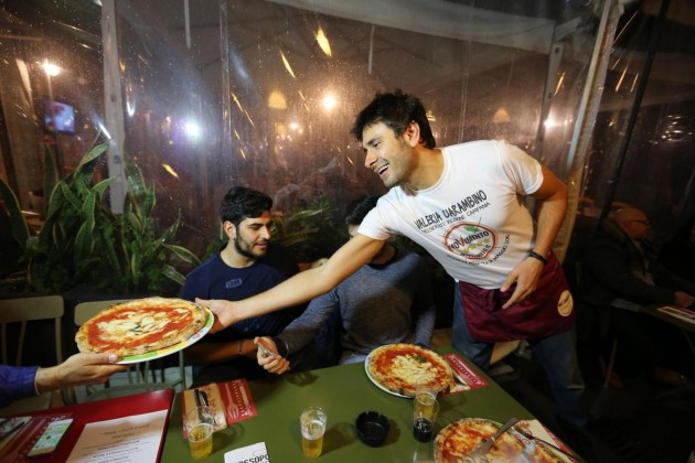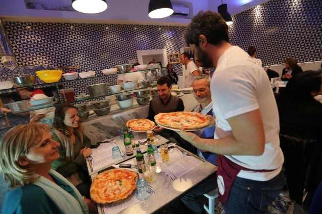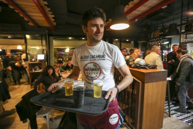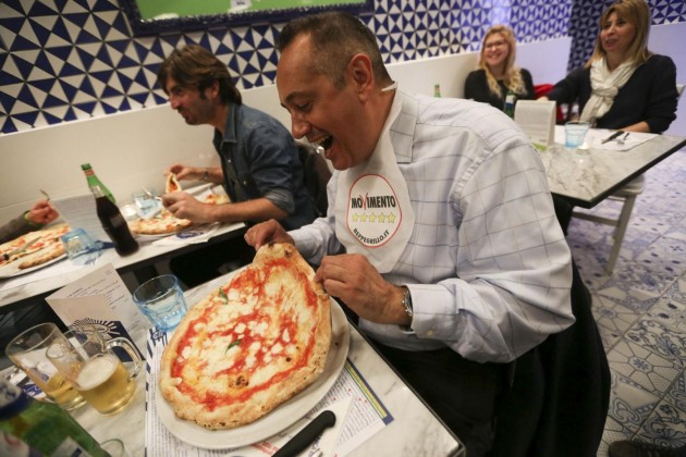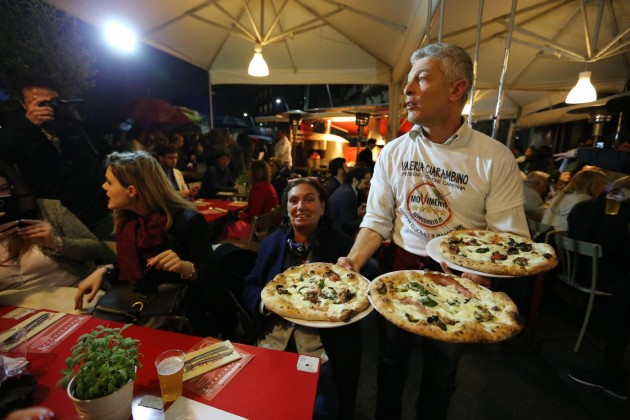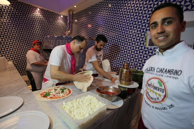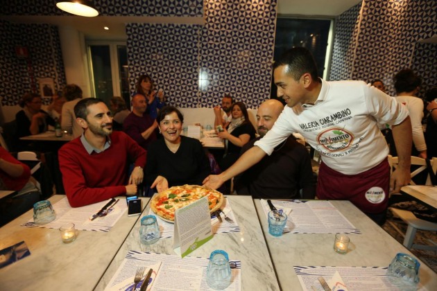 Luigi Di Maio, Alessandro Di Battista, Roberto Fico e Vincenzo Santangelo camerieri per una sera per raccogliere fondi per la campagna elettorale del Movimento 5 Stelle per le Regionali in Campania. I parlamentari hanno servito le pizze sul lungomare di Napoli per dare il proprio contributo a Valeria Ciarambino, candidata alla presidenza della Regione Campania.