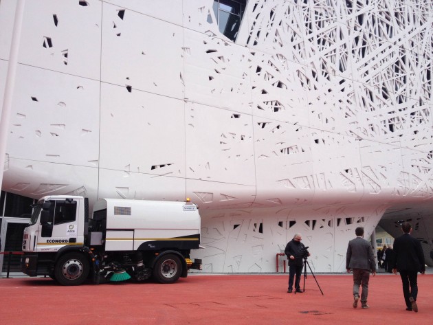 Ma appena ci si allontana dal percorso obbligato si vede come i ritardi abbiano lasciato il segno: alcuni bagni non sono finiti, oltre certe porte si aprono corridoi con cavi che penzolano. Anche i rischi sono segnalati in modo approssimativo: “Locale tecnico in tensione. Pericolo”, si legge su un foglio appiccicato con lo scotch. Stupisce anche l’inefficienza dei controlli: il ristorante dove ha appena pranzato Renzi dovrebbe essere off limits, ma se ci si infila nell’ascensore giusta nessuno ti vede, nessuno ti ferma.
