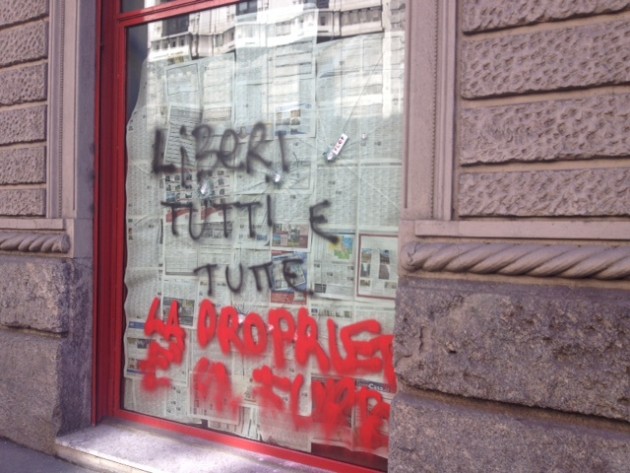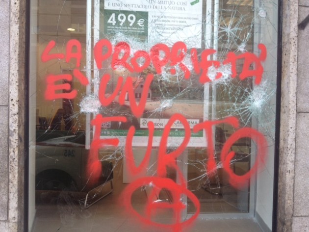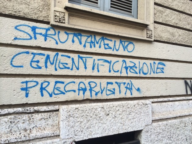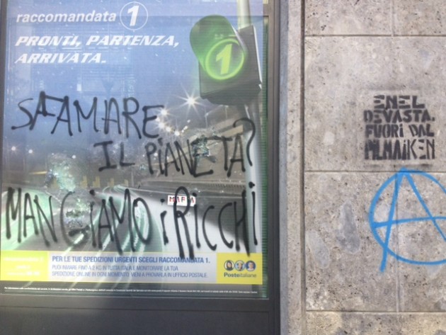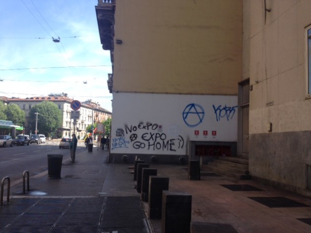 No Expo Milano, il giorno dopo la manifestazione: ecco le scritte sui muri dei black bloc