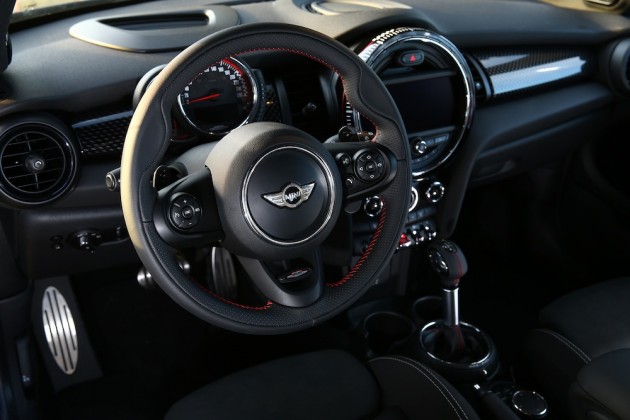 La Mini John Cooper Works è una macchina piuttosto versatile, per essere una piccola bomba. Si può immaginare di usarla anche tutti i giorni per andare al lavoro, magari selezionando la modalità “green” (che dovrebbe limitare i consumi) con l’apposita levetta e sfruttando lo stop&start dall’avvio silenziosissimo. Ma poi nel weekend si può spostare la modalità di guida in “sport” e farsi anche qualche bella guidata. Certo, rispetto alle concorrenti “piccole pepate” la Mini JCW costa parecchio di più – il listino parte da 31.200 euro – ma ha anche un motore “grande” per la categoria – 2.000 turbo – ed è molto ben rifinita, pure nell’abitacolo. Oltre alla strumentazione supplementare e all’head-up display, la JCW ha sedili sportivi che contengono bene senza “strizzare” il busto. Che cosa manca? La regolazione in altezza della cintura (a nessuno piace averla a taglio sul collo) e un bel maniglione sulla porta del passeggero, a cui attaccarsi quando il guidatore si scatena sulle curve.