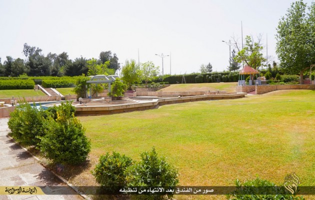 I profili social vicini agli uomini di Abu Bakr al-Baghdadi hanno infatti diffuso le immagini della festa e dei lavori di ristrutturazione che si sono resi necessari, dopo quasi un anno di guerra e raid aerei che continuano a colpire la seconda città irachena per grandezza. Le fotografie mostrano quello che sembra essere l’ormai ex Hotel Ninawa, uno dei cinque stelle più lussuosi della città, ristrutturato, ridipinto e con due grandi bandiere nere del califfato che sventolano all’entrata.