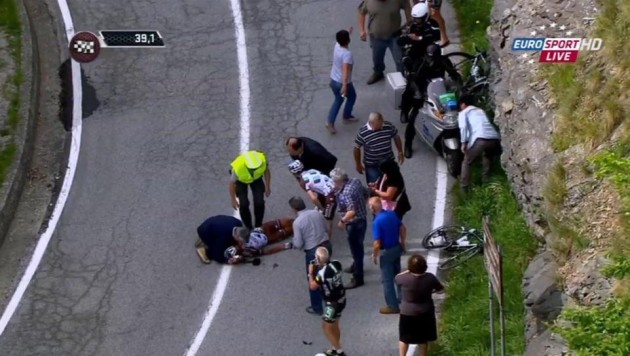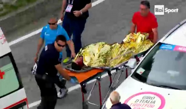 Pozzovivo al Giro d’Italia cade e sbatte la faccia. “E’ lucido e cosciente” (FOTO e VIDEO)