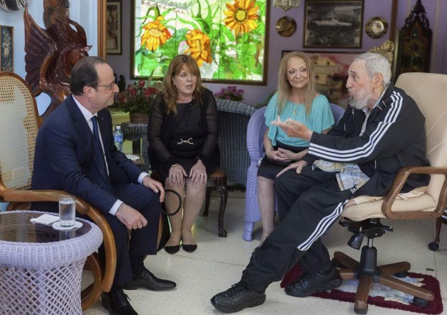Castro ha parlato soprattutto della Francia, dei suoi incontri con François Mitterrand, e poi di agricoltura, alimentazione, clima, le sue preoccupazioni attuali. Per Hollande invece nessun pensiero alla politica interna: “Se bisognasse passare da Cuba per riunire la sinistra. Questo viaggio non aveva questo significato”. Sono rare le apparizioni pubbliche del lider maximo, ricomparso per la prima volta ad aprile dopo oltre un anno. Era stato fotografato seduto in auto, ritratto nella sua abituale tenuta sportiva mentre salutava un gruppo di venezuelani.